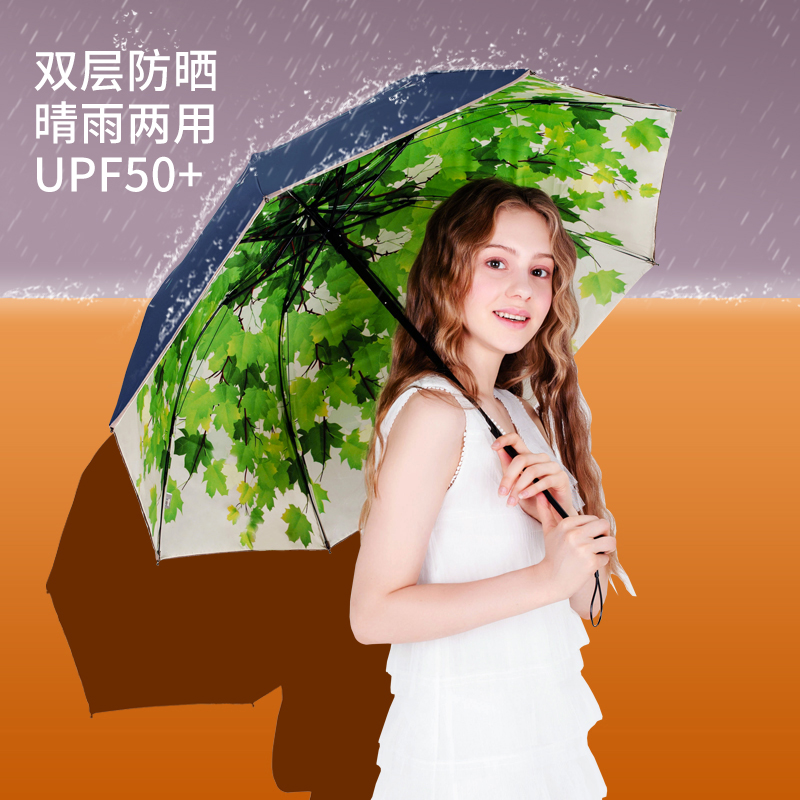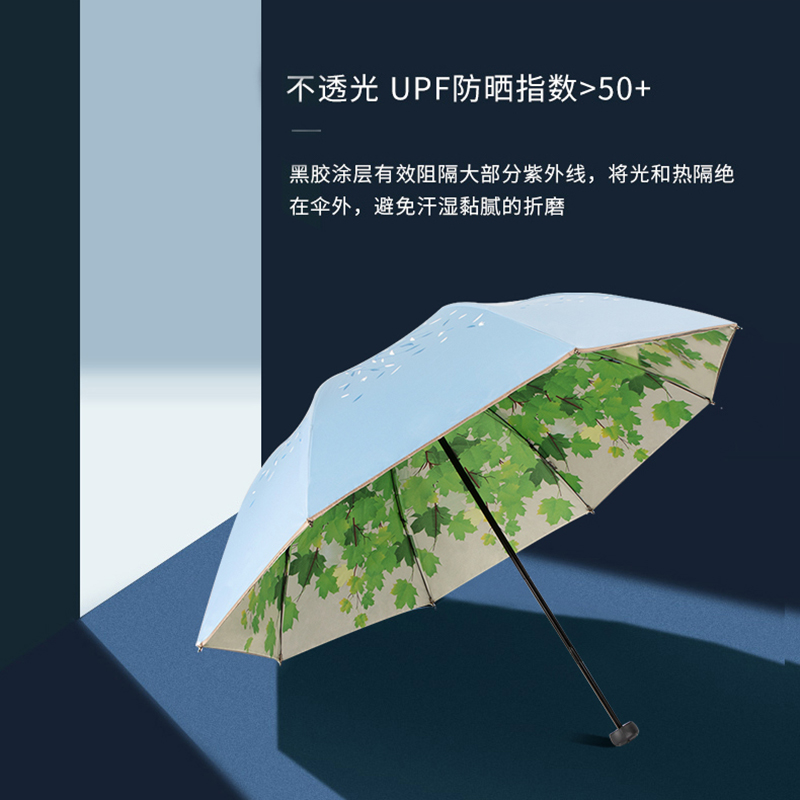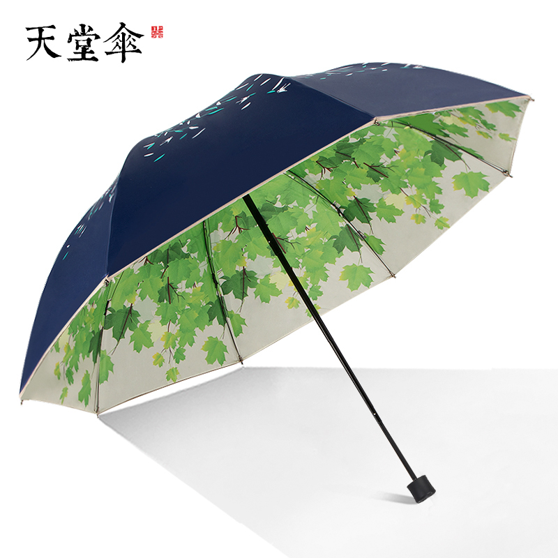 Paradise umbrella female sunny and rain dual-use small fresh parasol double sunscreen parasol anti-UV black glue three-fold umbrella