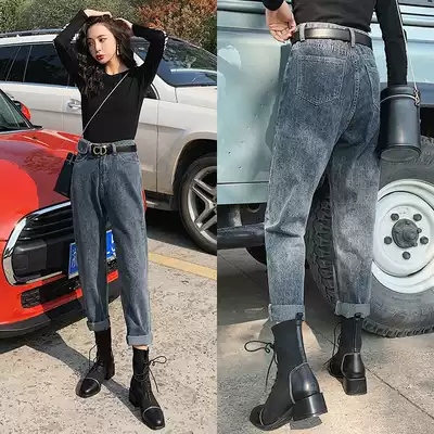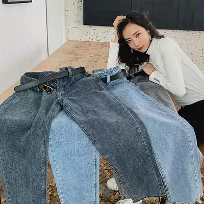 Haren pants jeans women loose 2021 spring and summer new high waist slim burrs old father pants straight pants