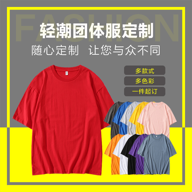 Off-shoulder T-shirt loose five-point sleeve work clothes Graduation party class clothes Pure cotton short-sleeved advertising shirt custom printed logo