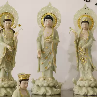 Han White Jade Amitabha Jade Guanyin Buddha statue ornaments Western three Holy Jade gods decoration Gizang Bodhisattva