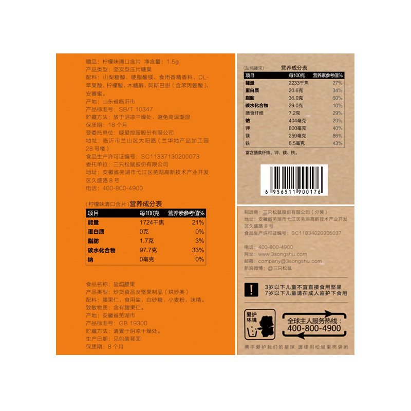 (Three squirrels _ salt baked cashew nuts 185gx2 bags) casual snack Vietnamese nuts dried fruit stir-fried original taste