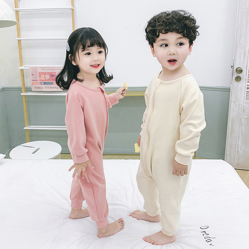 Baby Pure Cotton Pyjamas with children Sleeping Clothes Spring Autumn Season climbing clothes Sub-legged Sleeping Bag Girl girls Long sleeves Home Dress Foreign Pie