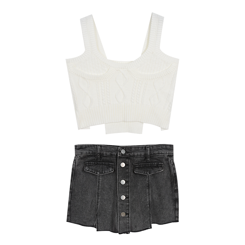 2022 Summer New Ocean Vest Cowboy Half Body Dress Career Fashion Minus Sister Two Style Suit Ladies