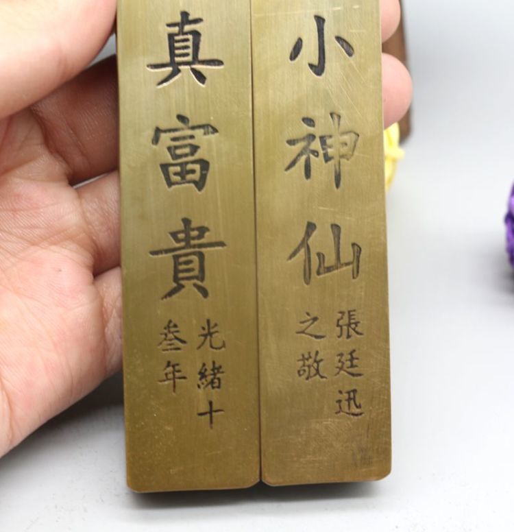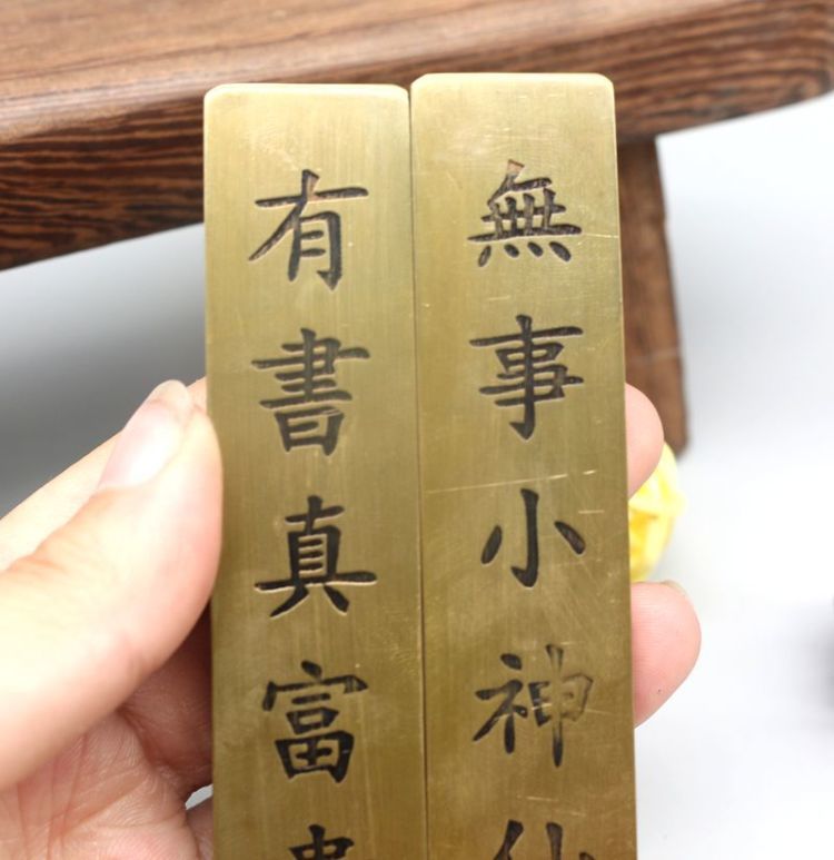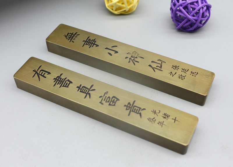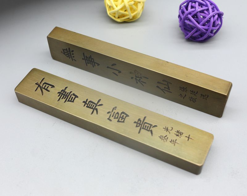 Ancient play collection brass solid core Town ruler press ruler Town paper Wenfang Four palate Chiang Kai-shek Calligraphy and heaven and heaven