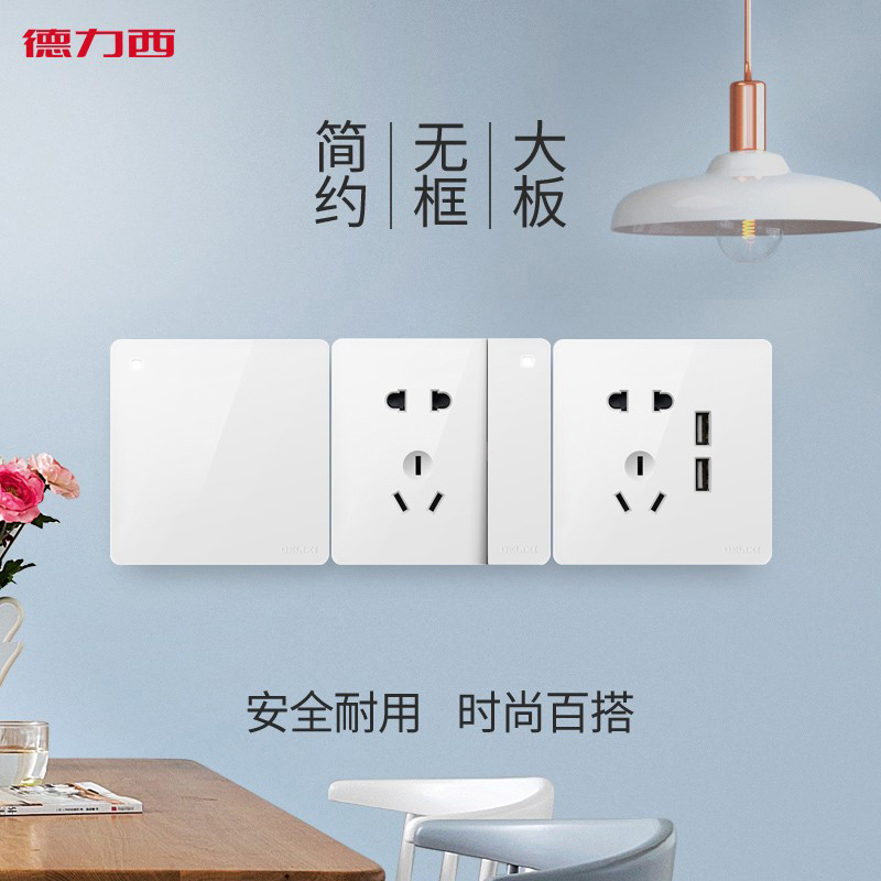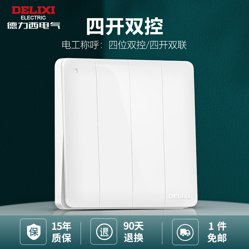 Delixi wall household power light four-on double-cut switch 86 type 4 four-position quadruple switch panel concealed installation