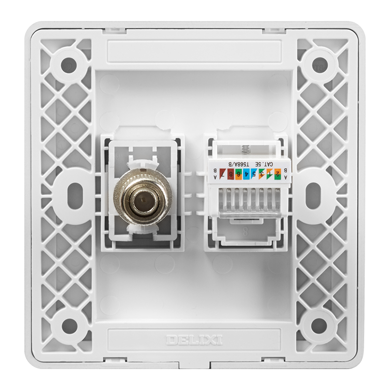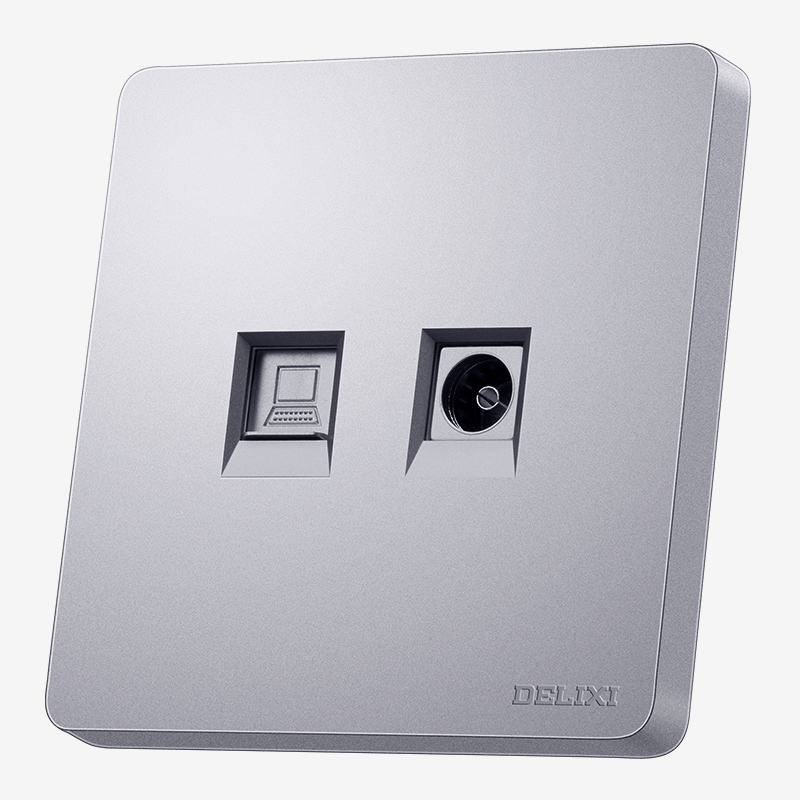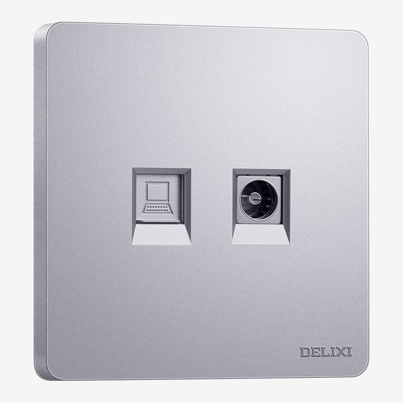 Delixi 86 type TV computer socket network cable cable TV network panel closed-circuit network video plug one silver