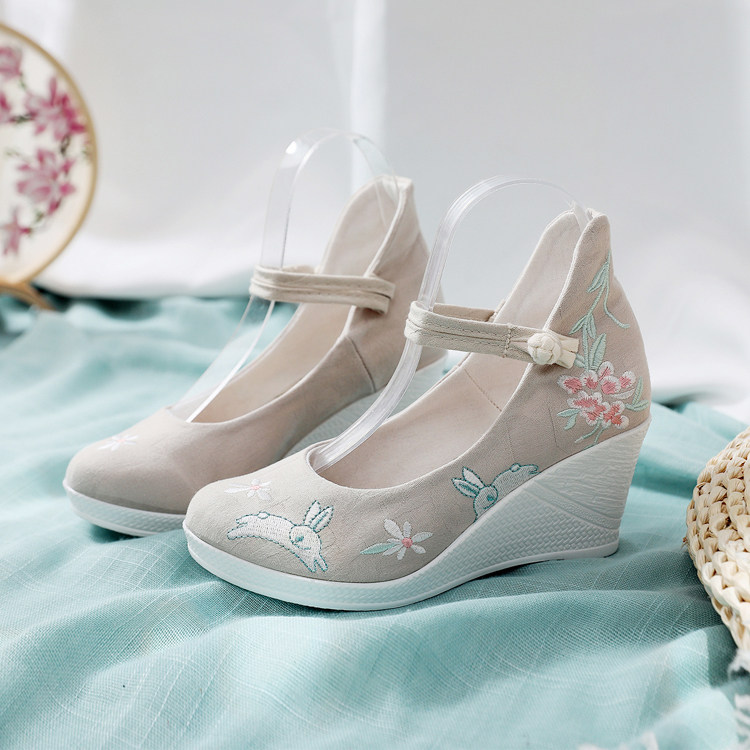 Ancient Wind Shoes Old Beijing High Heel Single Shoes Hanfu Women Shoes Embroidery Ancient Dress Shoes National Wind Slope Heel Spring