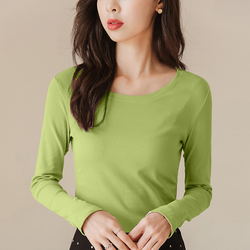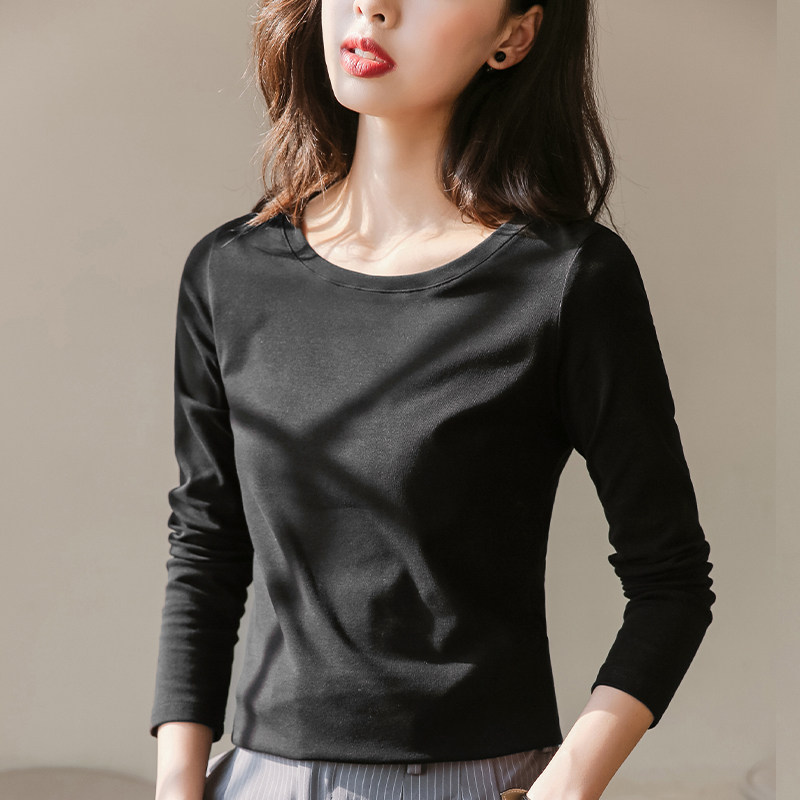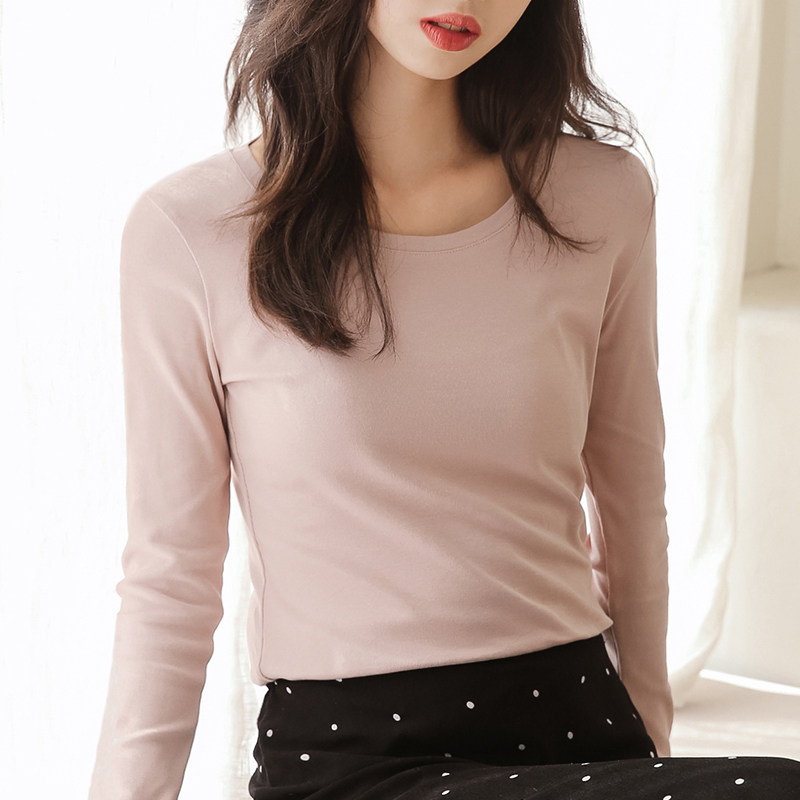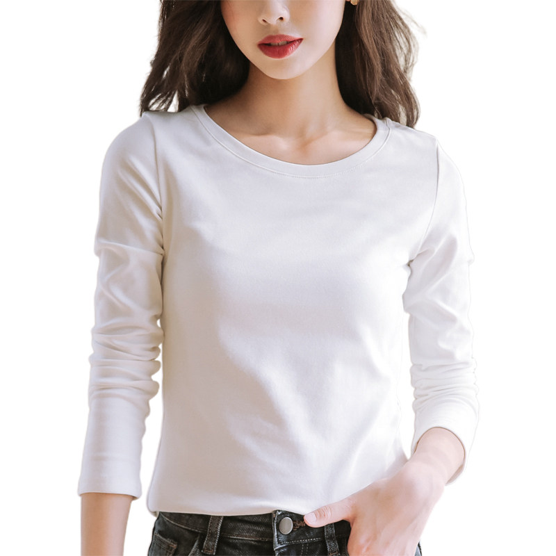 2020 new spring and autumn round neck long sleeve T-shirt women's white base shirt women's Korean slim fit solid color top