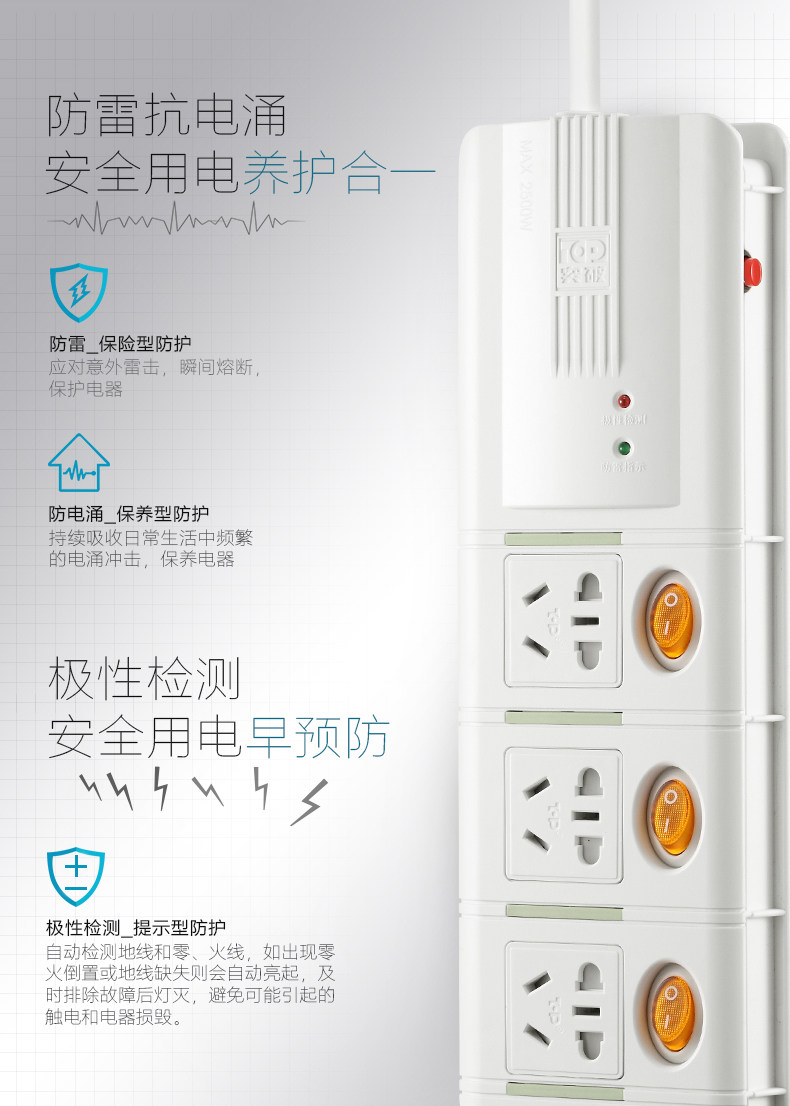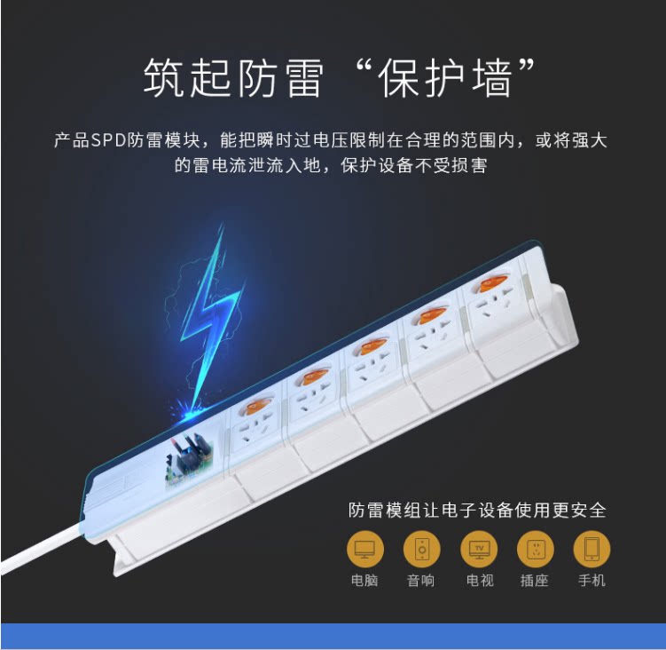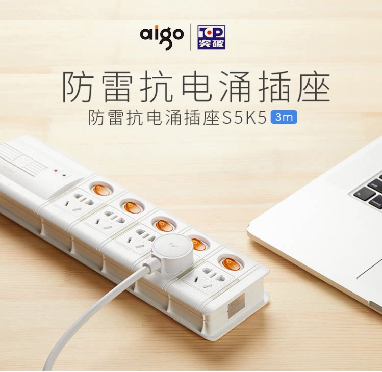 Breakthrough Lightning Protection Socket S5K5 Five Control Five Independent Switch Control Five-hole Extension Line Anti-overload Protection