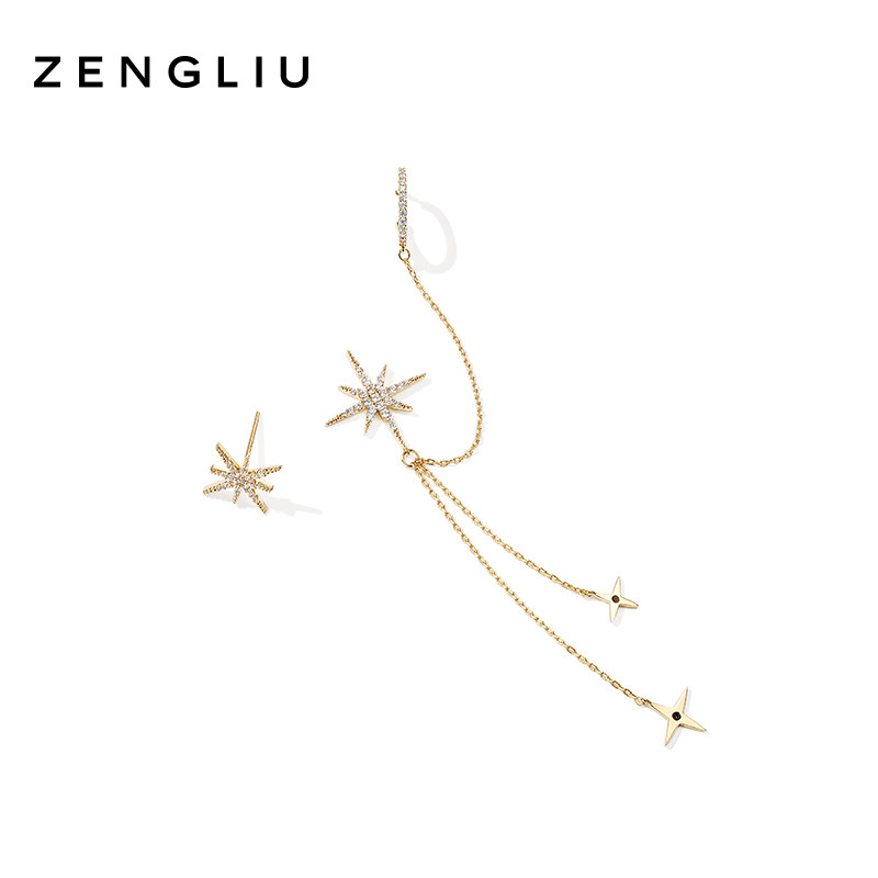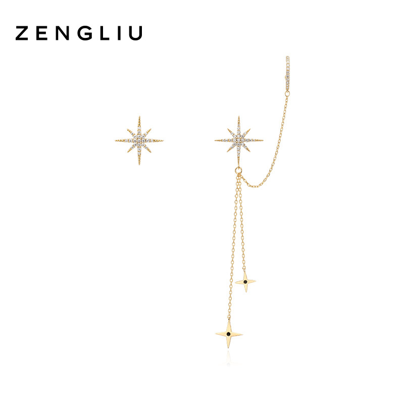 ZENGLIU Eight Mans Earshot Female Temperament Long Version Asymmetrical Ear Bone Stud Earrings Streaming Suear Pendant Ear Pendant