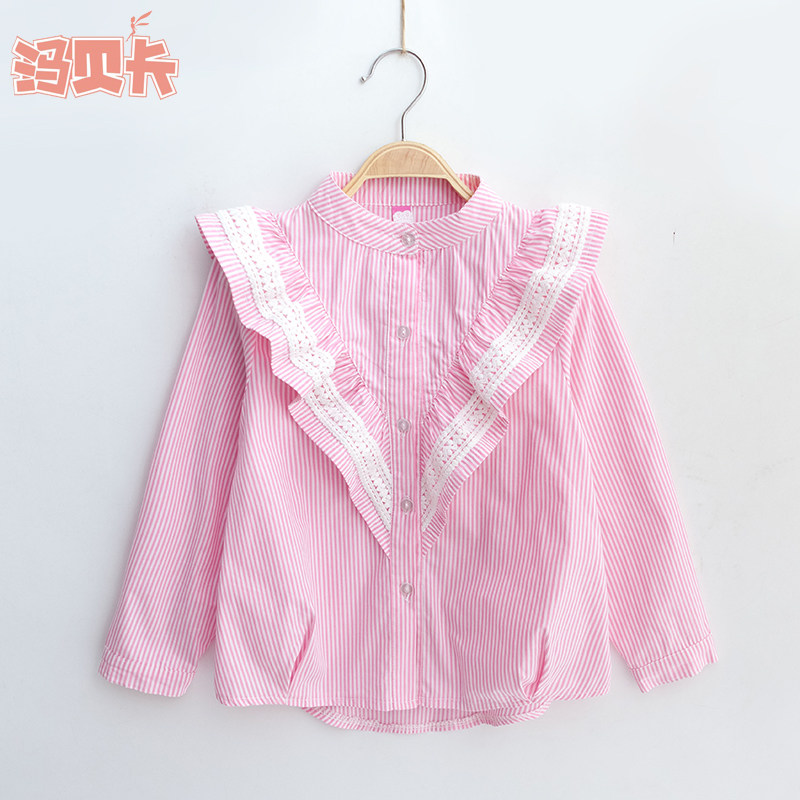 Cotton girls' shirts spring and autumn clothes new middle-aged children's long-sleeved striped horn-sleeved girls' shirts dolls