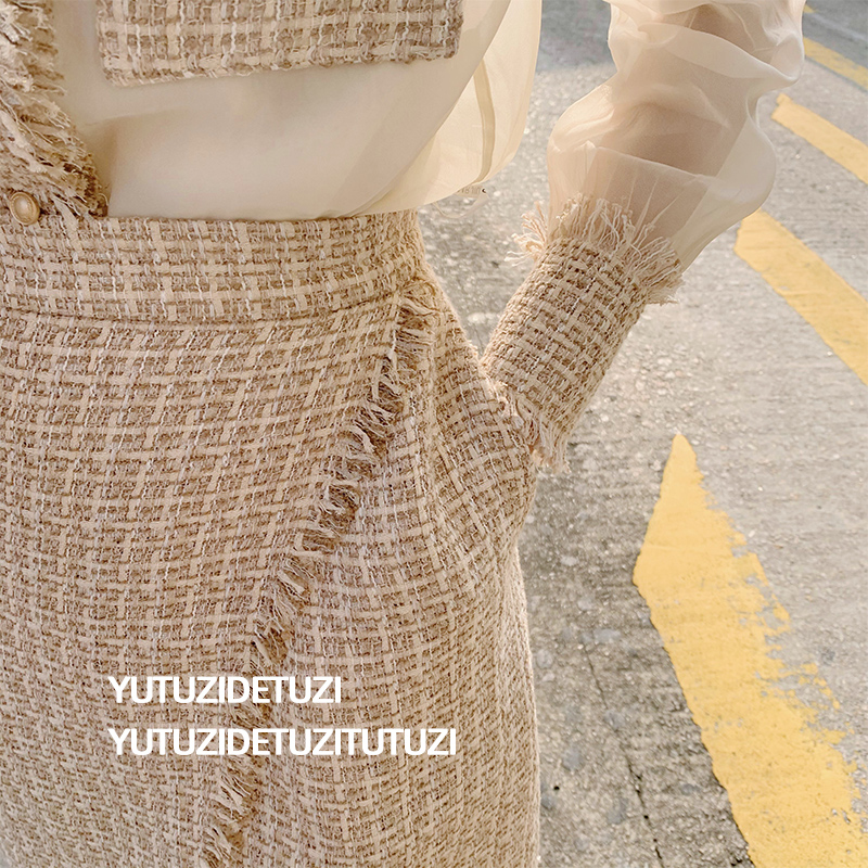 Fish Rabbit-name Yuanyuan Rough Flowers Half Body Dress Woman Small Taller Waist Display Slim Shade a dress 2020 Autumn Winter New