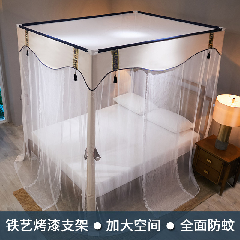 Mini house new Chinese bed curtain mosquito net home bedroom integrated with bracket encryption thickened court floor-to-ceiling mantle