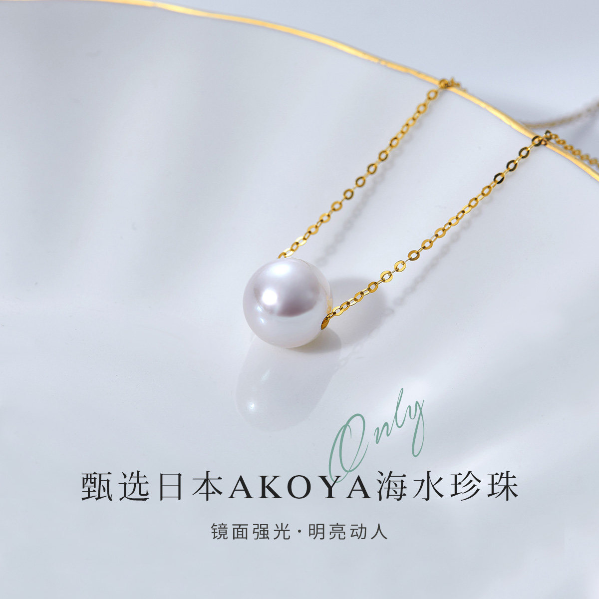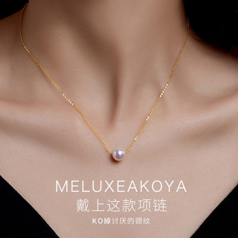 MELUXE18K gold Japanese akoya seawater pearl necklace pendant clavicle chain single strong light Passepartout necklace