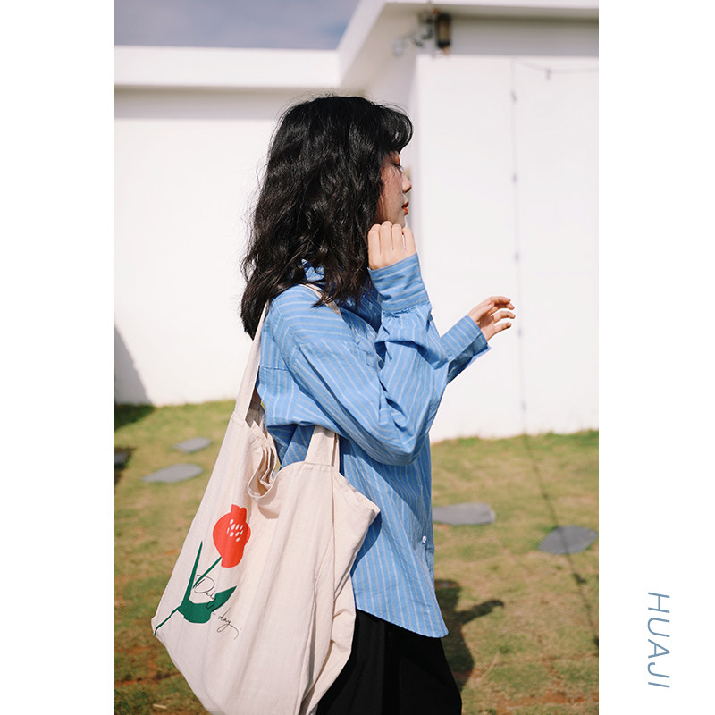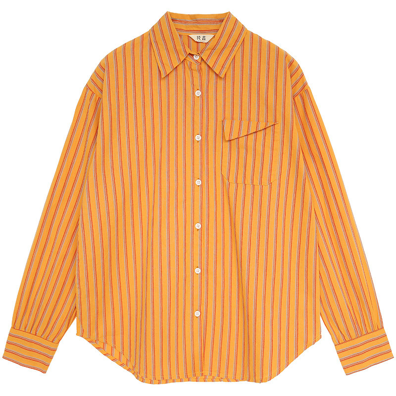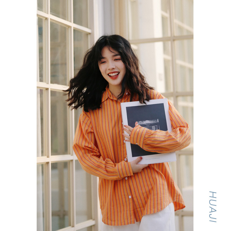 Huang orange vertical striped shirt female Han edition of the Hao Hang Hang Tang Retro Hang Student College wind shirt A375