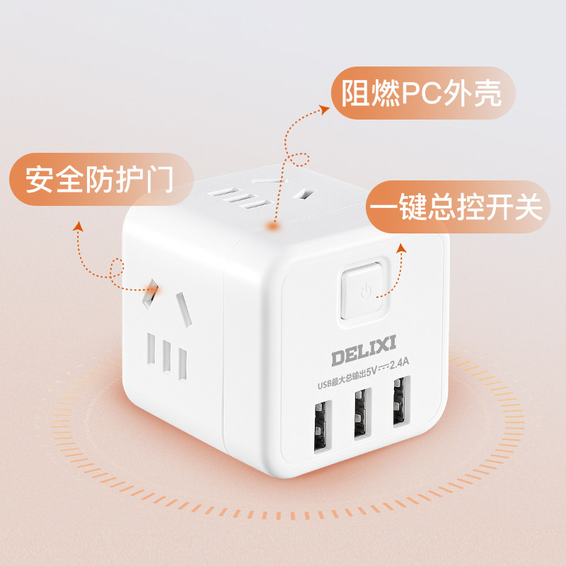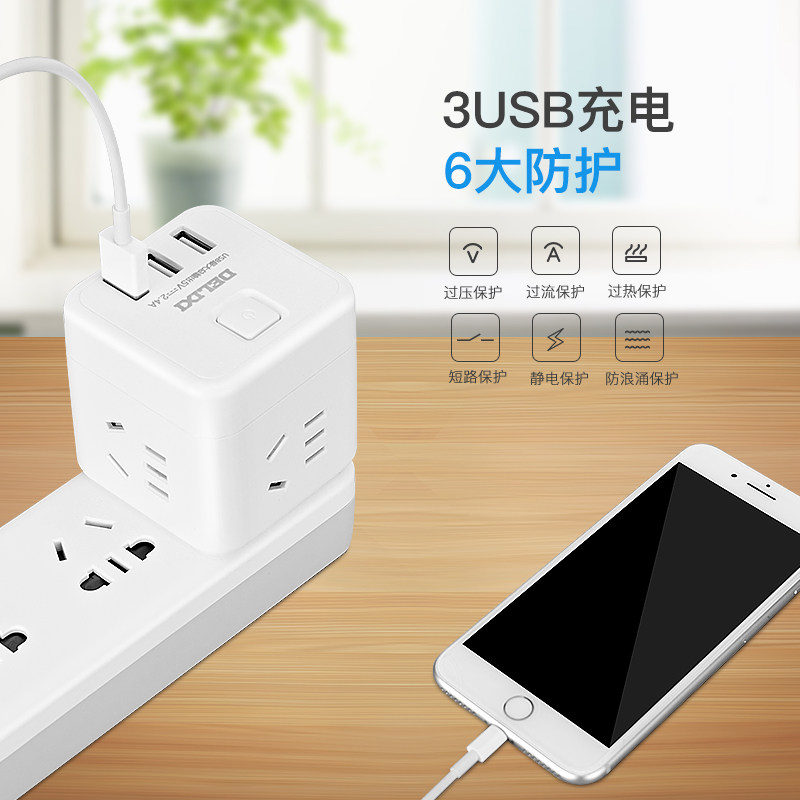 Delixi socket usb socket charging Rubik's cube socket extension line multi-functional household power wiring converter