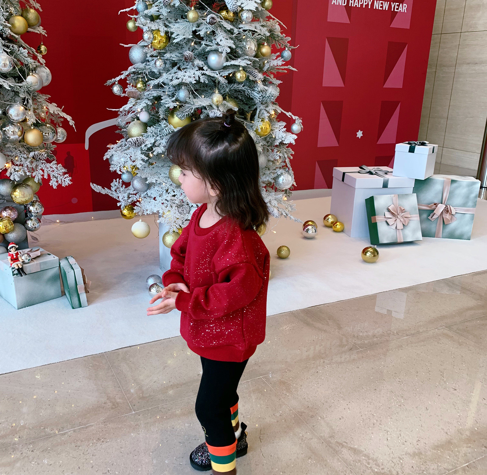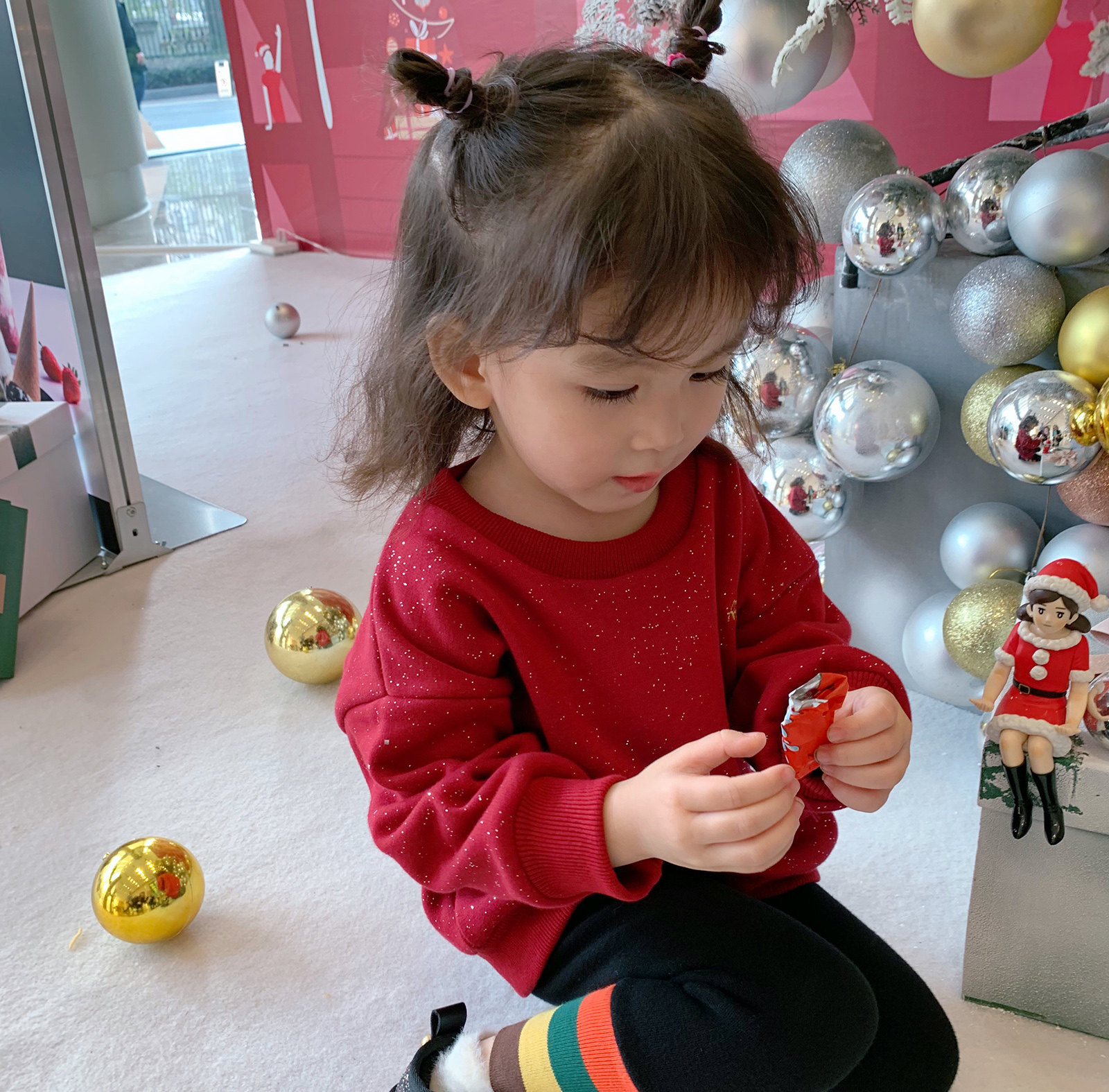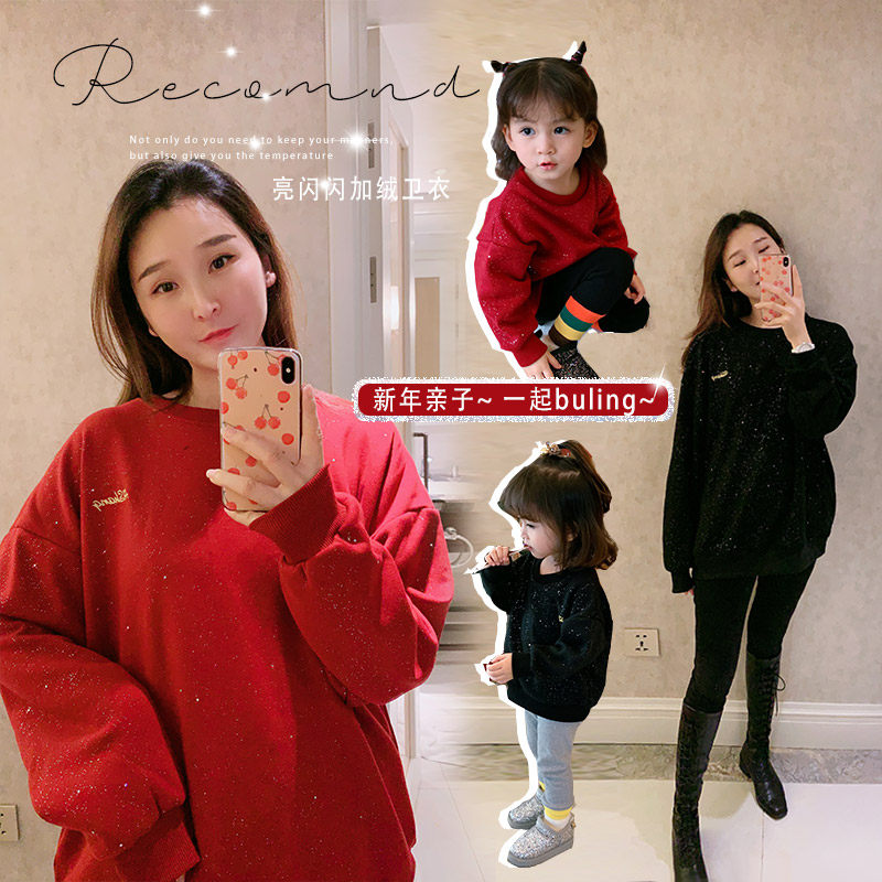 Fall in love with a beautiful girl family of three parent-child clothes girls thick T-shirt plus velvet baby children's one-piece fashionable fleece sweater