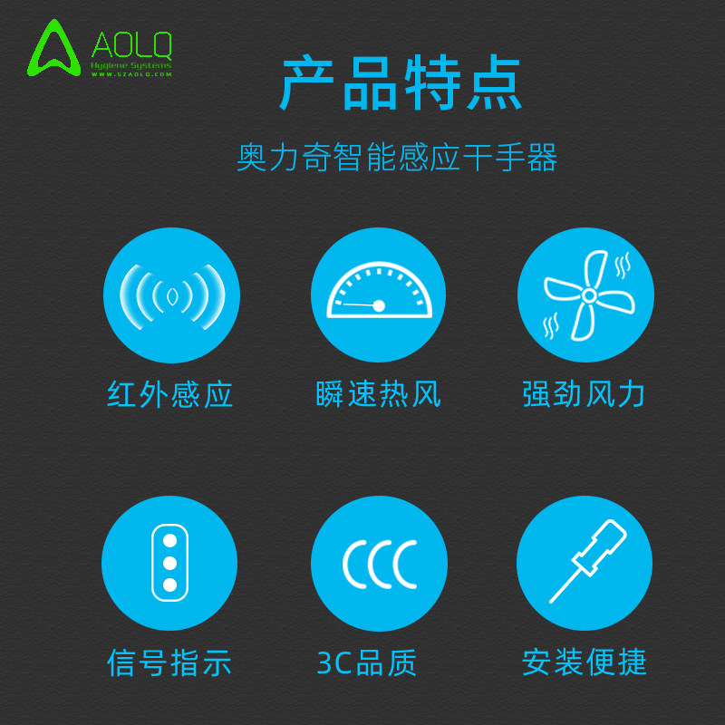 Ollich HQ-2010 Dry Hand Instrumental Fully Automatic Induction Dryer Commercial Hotel Makeup Room Blow Hand Dryer