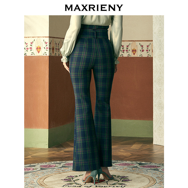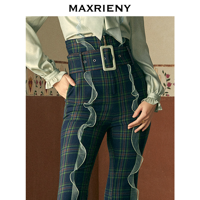 MAXRIENY2020 Spring new fashion retro Coloured Grain lotus leaf lace long pants woman high waist wide pants slim