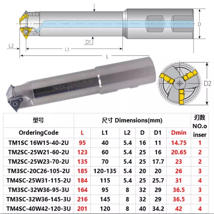 Deep hole thread milling cutter rod Machining center TM deep hole inner thread U-shaped CNC milling cutter rod U-shaped blade