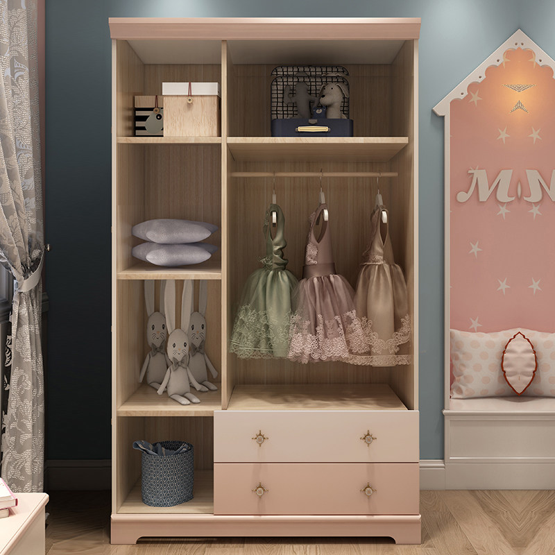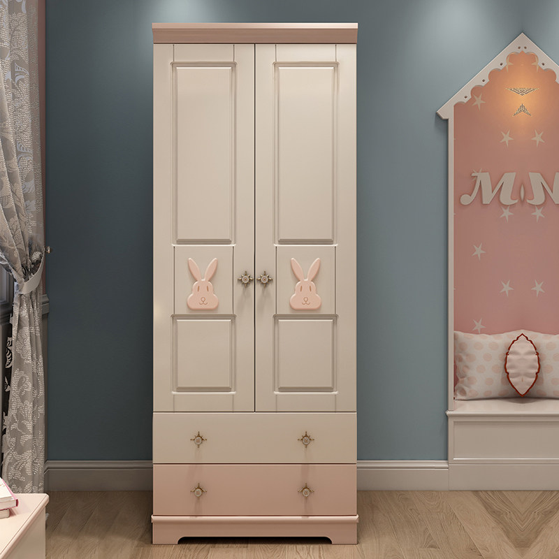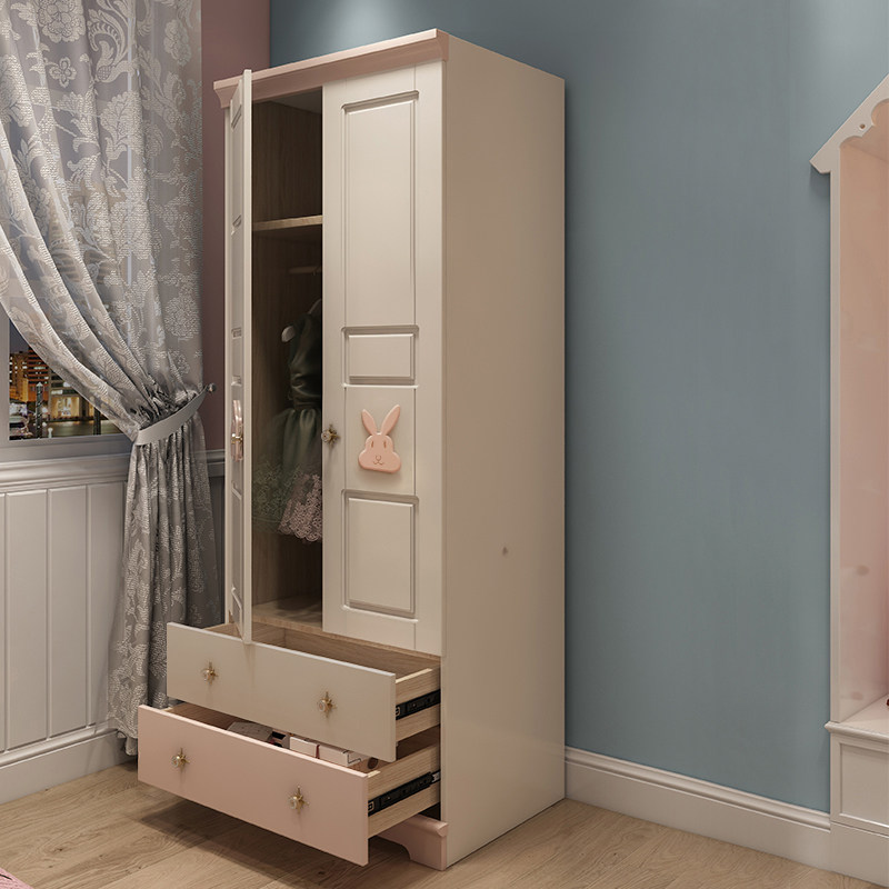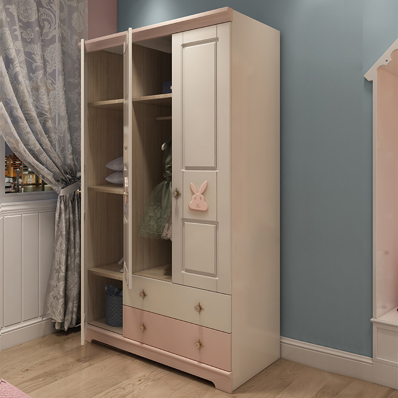 Nordic children's wardrobe simple and modern home bedroom sliding door wardrobe simple girl pink rabbit wardrobe