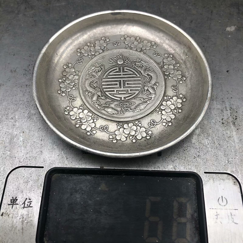 Antique - Play Miscellaneous copper silver plate double dragon silver plate Bogu furnished silver disk cup mat