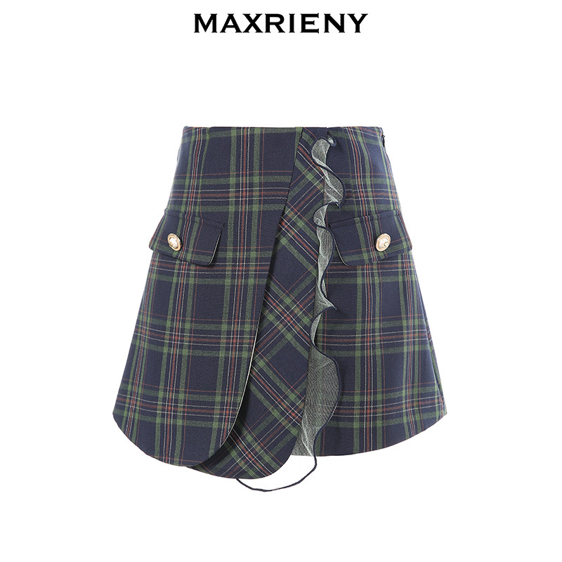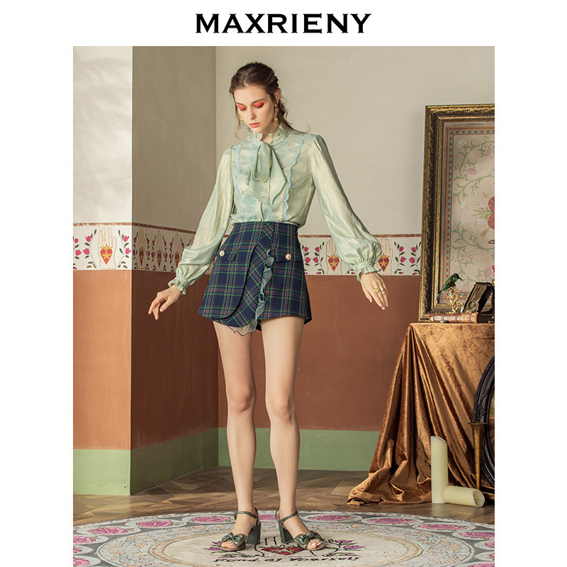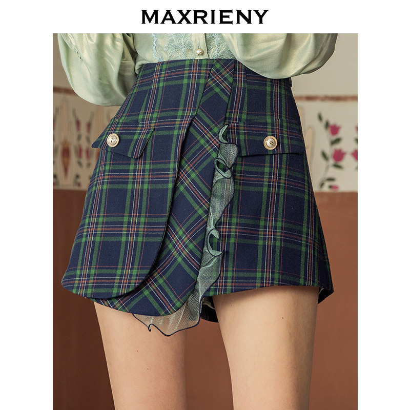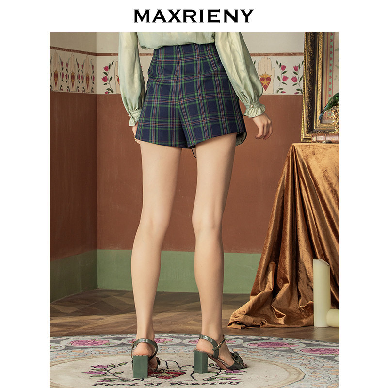 MAXRIENY2020 spring new retro fashion plaid high waist shorts women's ruffle wide leg pants are thin and trendy