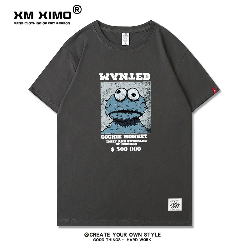 Short-sleeved T-shirt men's Sesame Street tide brand trendy half-sleeved pure cotton loose couple's all-match summer cec net red clothes