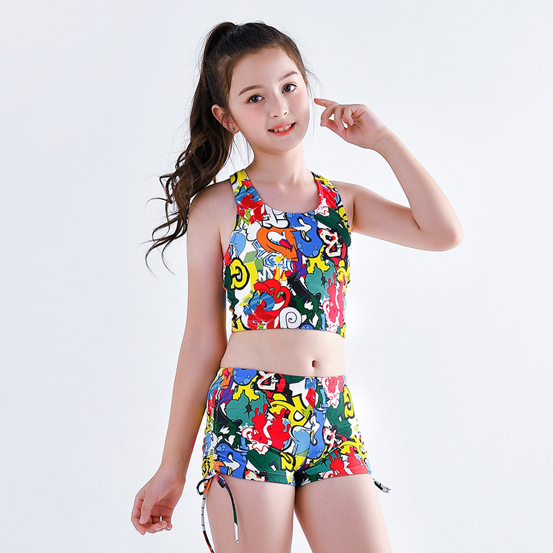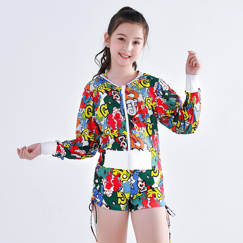 2020 new girls swimsuit children's middle and large children's seaside sunscreen swimsuit student long-sleeved split swimsuit set