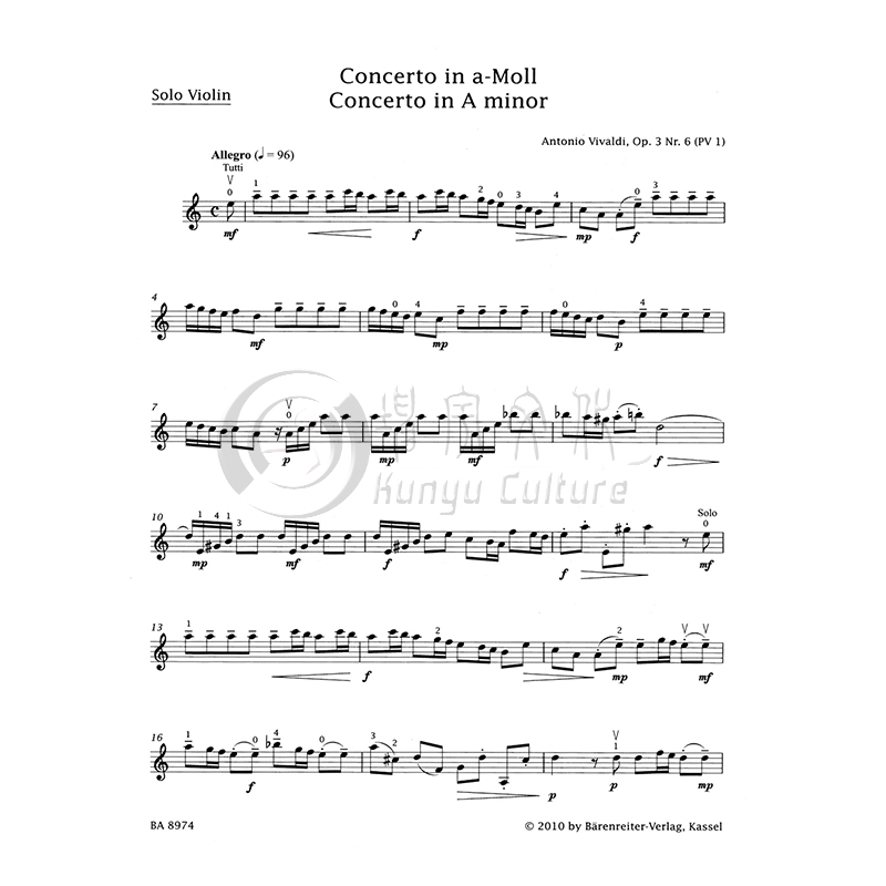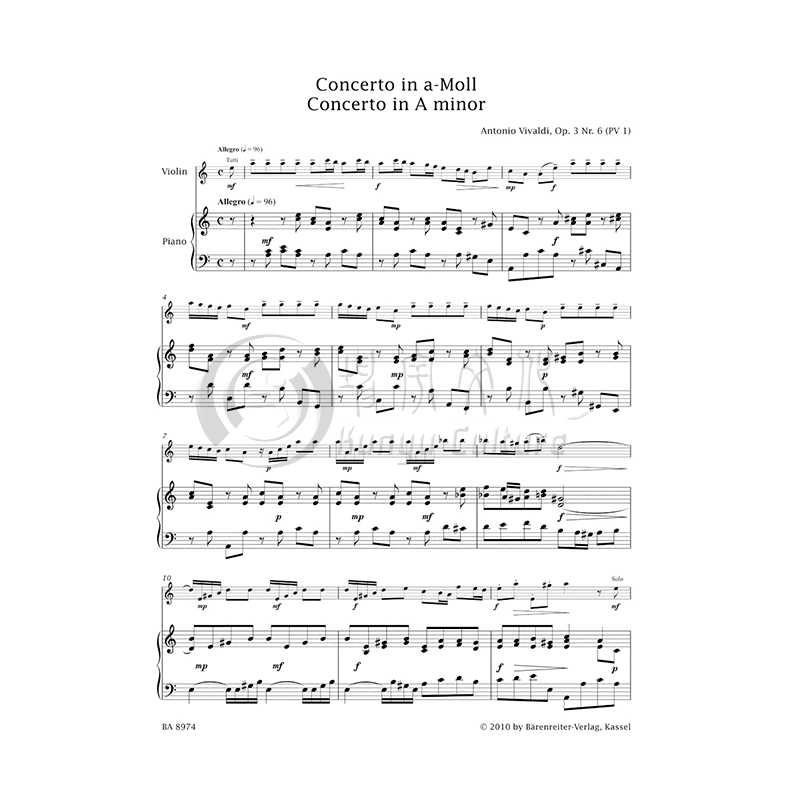 Vivaldi Violin Concerto A small tune op3 no6 band steel accompanied by the German rider's original score book Vivaldi Concorto in A