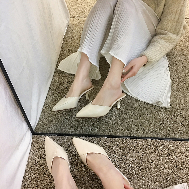 Baotou half slippers women's 2022 spring new slippers fashion all-match net red ins trendy pointed toe stiletto heel mules