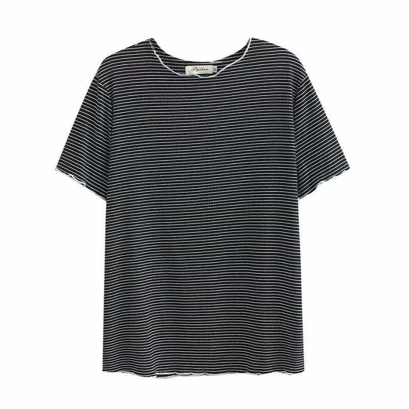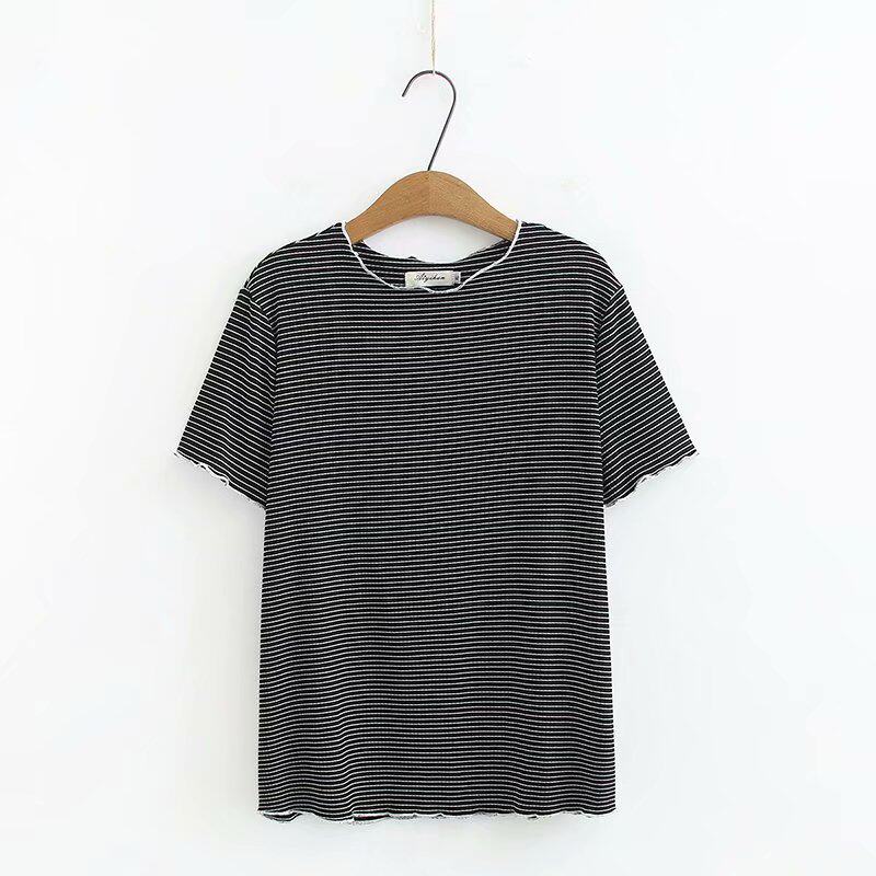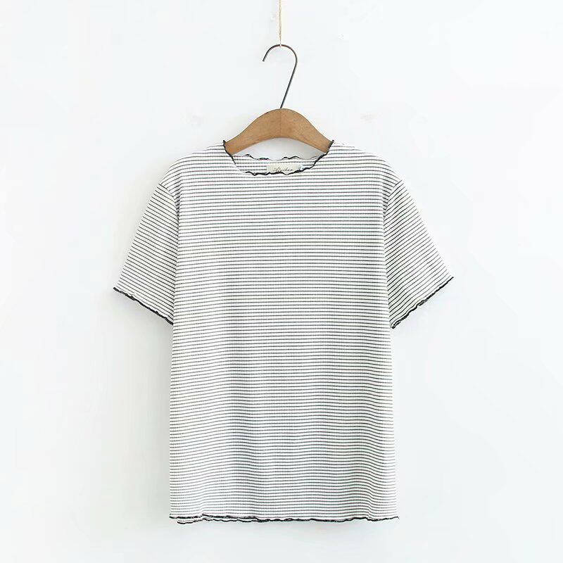 2020 Summer new fat mm plus fat plus size foreign pie stripes short sleeve base shirt middle-aged mother T-shirt