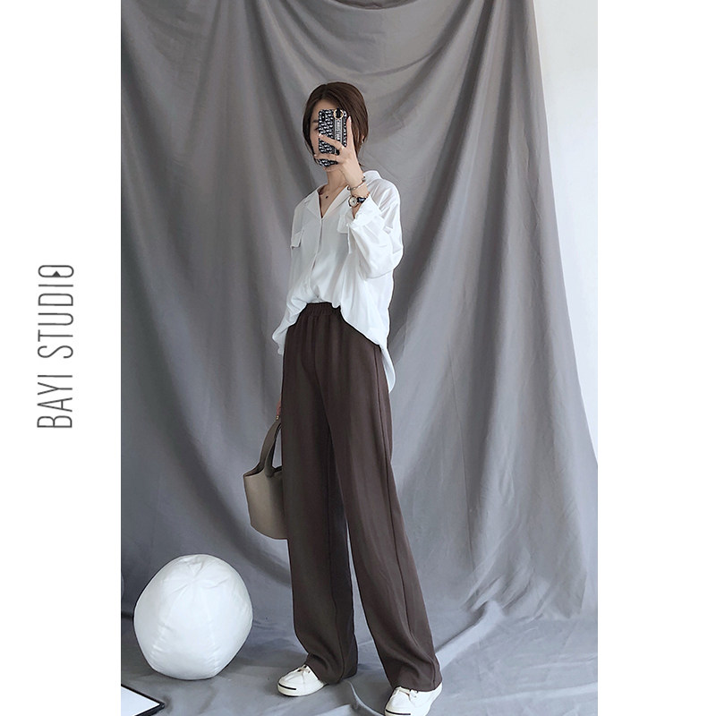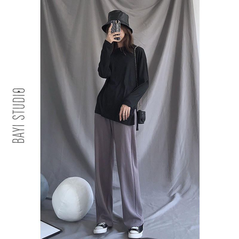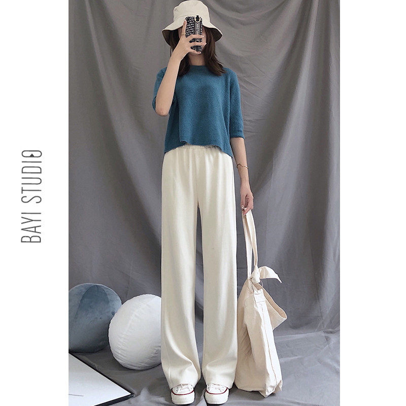 Knitted pants female loose straight tube 2020 new casual long trousers high waist - perceived trawl floor broad leg pants