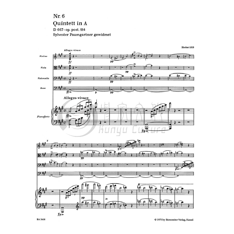Schubert Trout Quintet in A major op post114 D667 total score Bear rider original score book Quintet in A Major