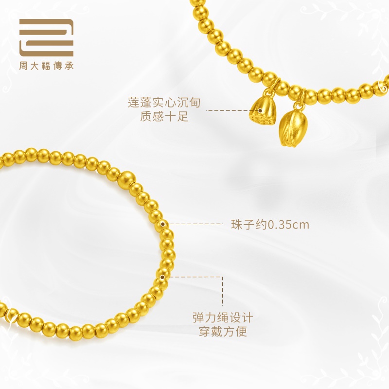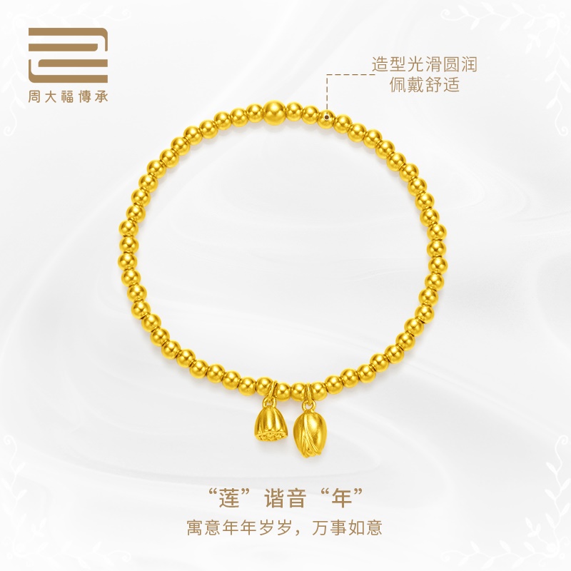 (Same in the mall) Chow Tai Fook heritage classic heritage hehe lotus heart lotus pendant gold bracelet F221393