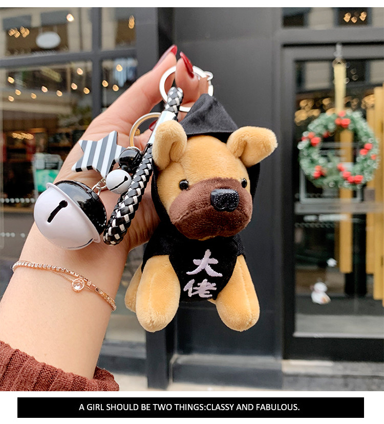 Creative plush key buckle female Korean cute puppy male and female couple car key chain pendant female bag hanging decoration