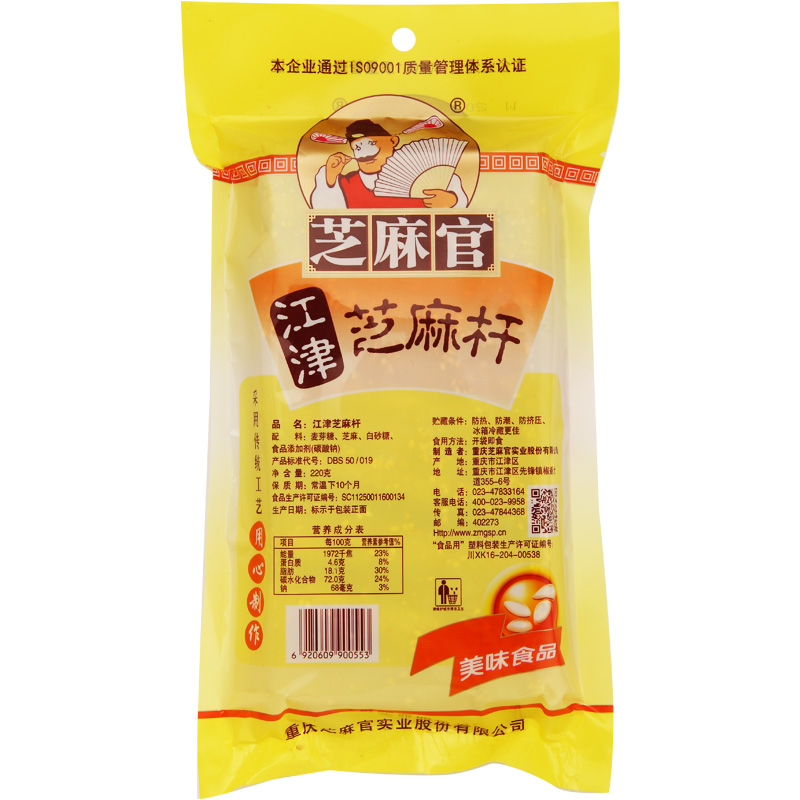 Chongqing Trip Zhengzong Sesame Guan Sesame Officer Sesame Rod 220g fragrant sweet handmade snack malt stick candy accompanied by a hand snack