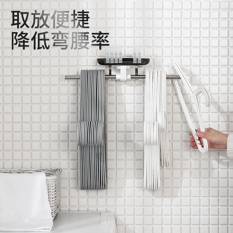 Hanger storage artifact wall-mounted wall-free punch-free home balcony rack hook clothespin finishing rack
