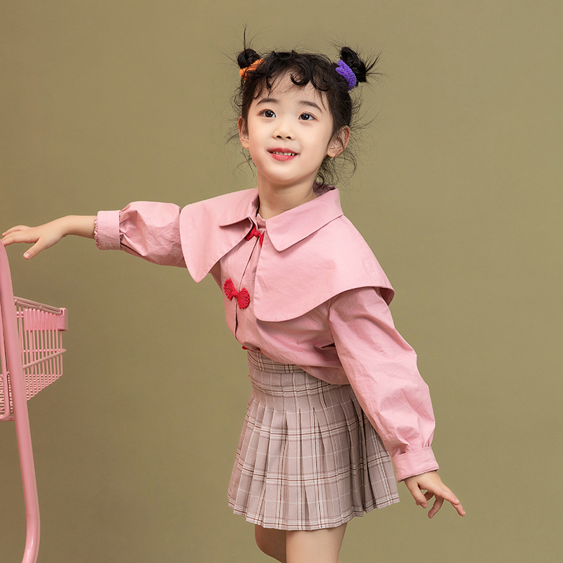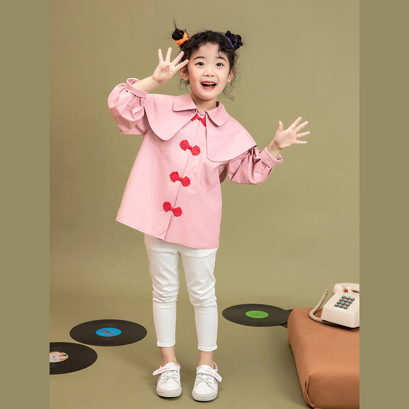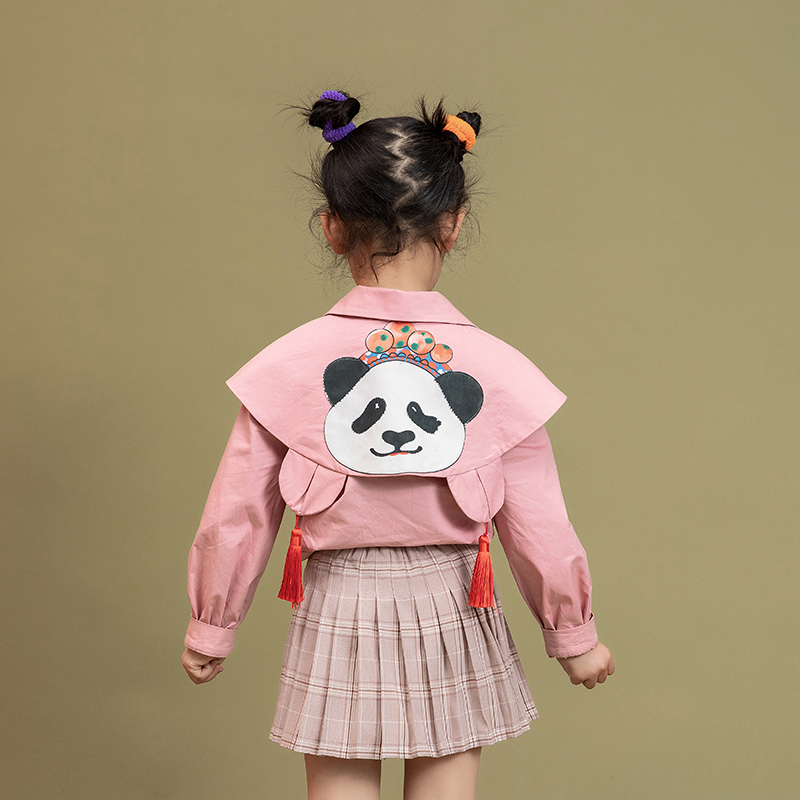 Peking Opera Panda Series Girls Long Sleeve Shirt 2021 Autumn Dress New Foreign Design Kids Sense Shirt Top