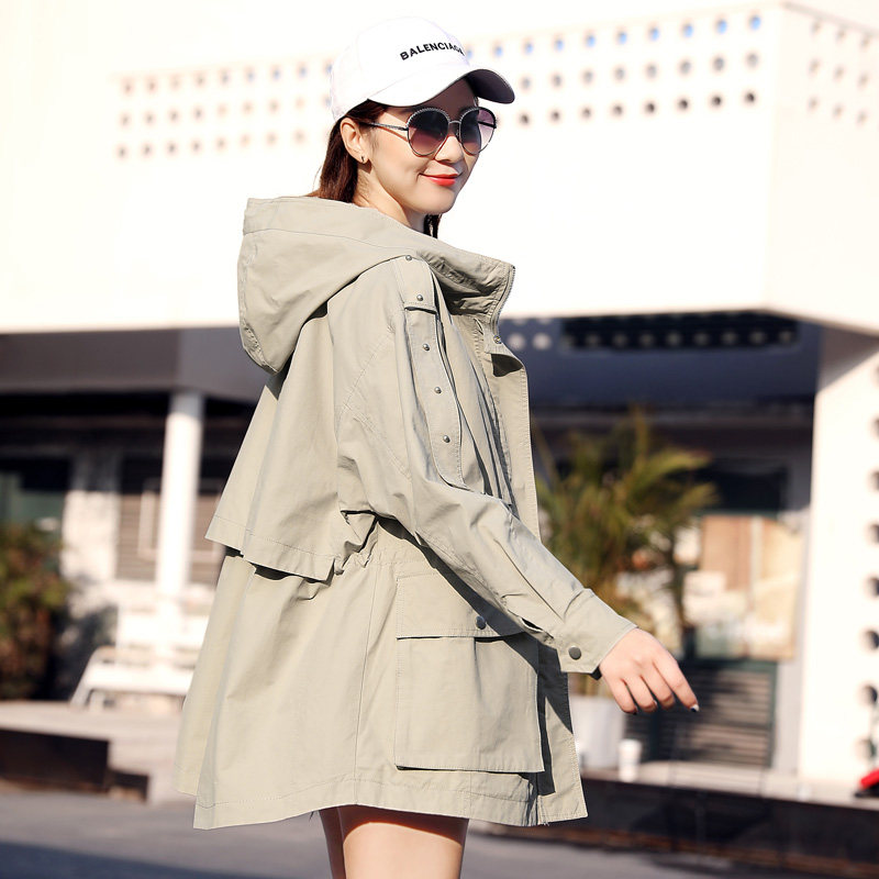 2022 Spring Fall new Lianhood loose large size Wind dress Women's medium long version Small sub-Han version Temperament Casual Jacket
