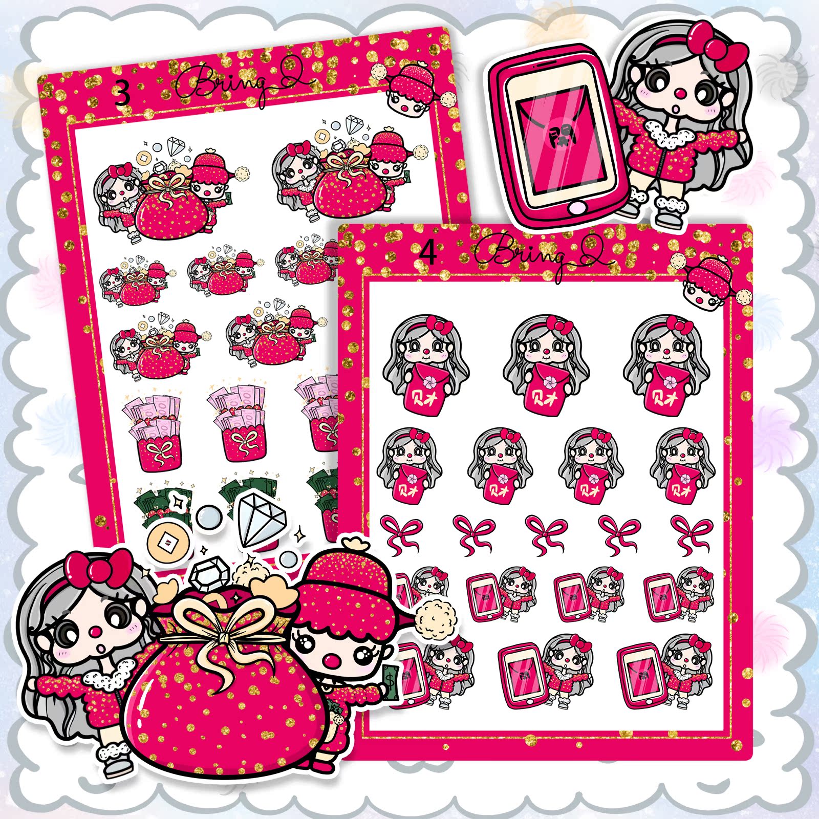 Brying Q] Original small sticker New Year Series ins and American Wind Handbooks cute characters Daily material sticker