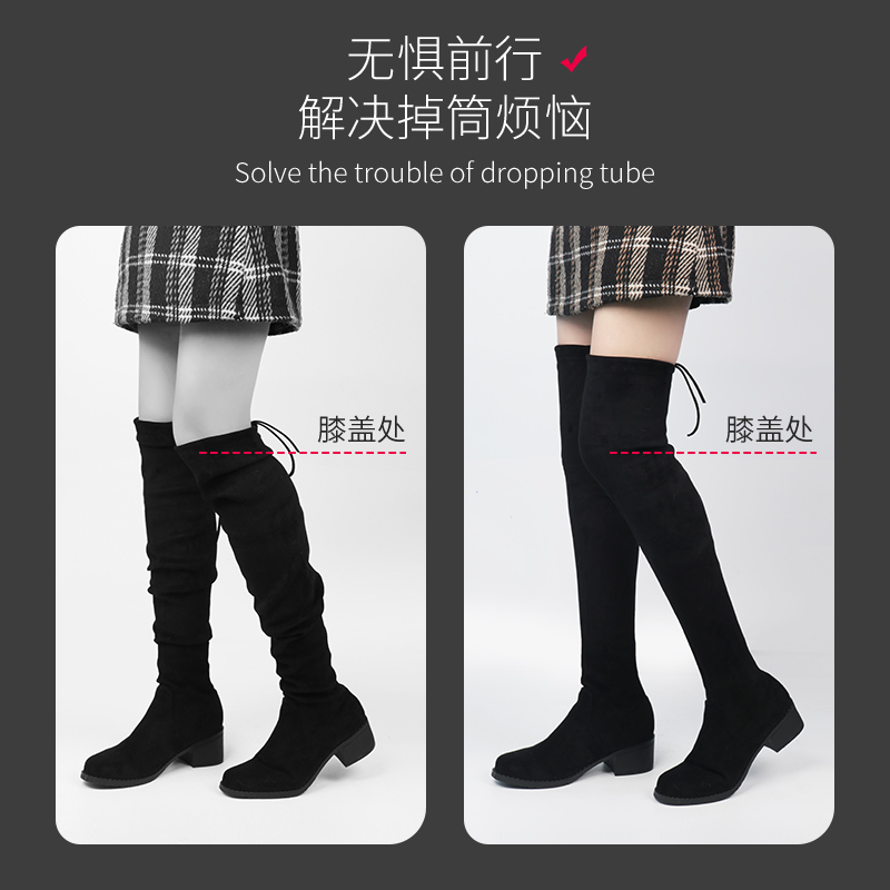 Anti-drop boots Anti Slip Fixed Long Cylinder Boots High Cylinder Boots Over Kneecap Boots Long Boots Drop Proof Barrel Shoestring Women