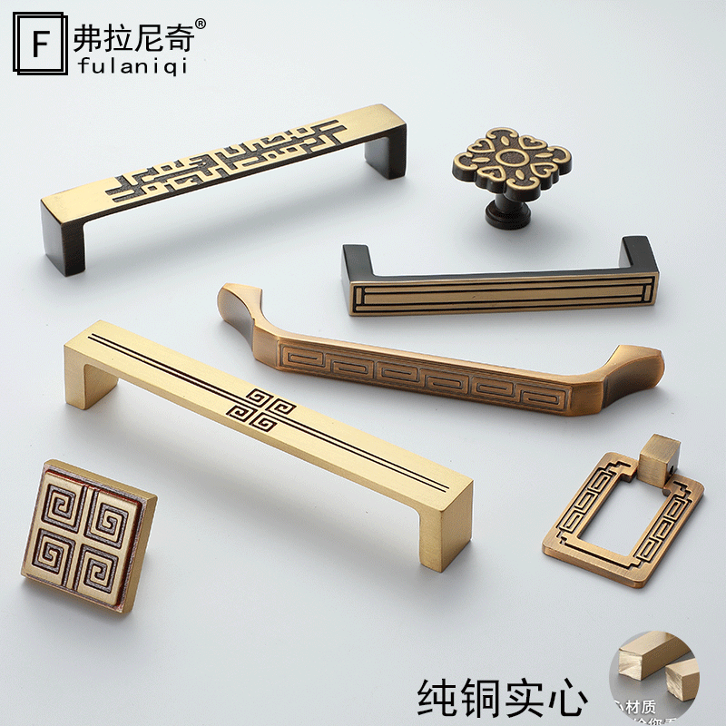 New Chinese style pure copper handle antique wardrobe cabinet drawer cabinet door handle full copper light luxury Chinese cabinet handle