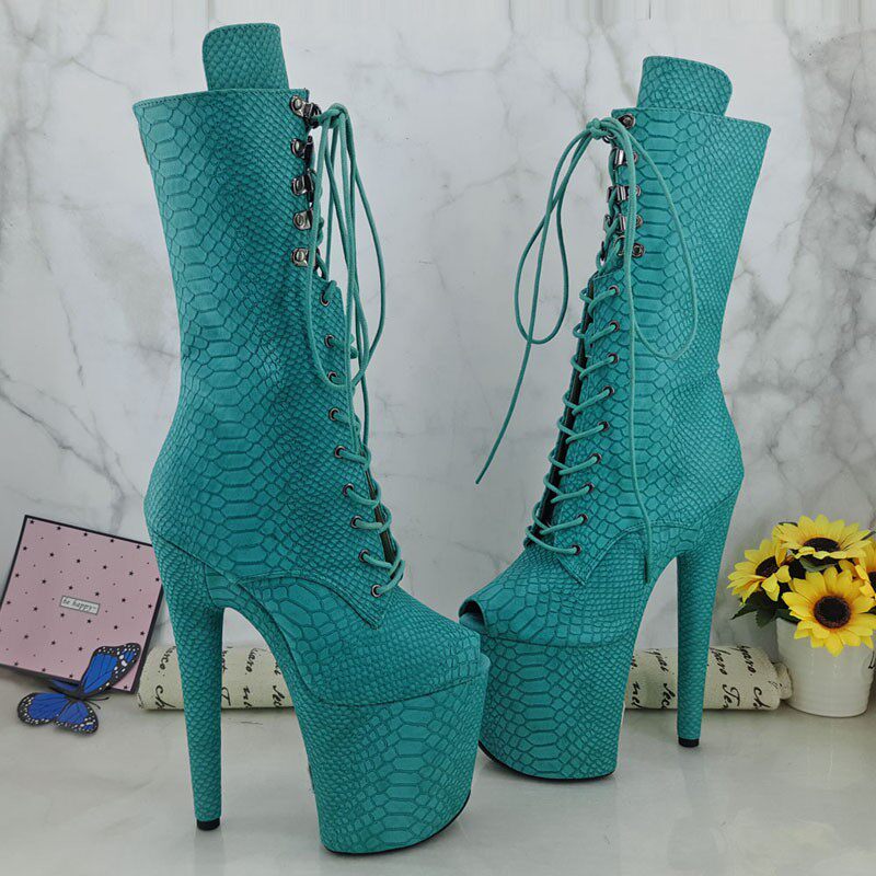 Leecabe New Waterproof Bench Snake Tattoo Model Short Boots and European Steel Tube Dance Girl High heels 920384374B