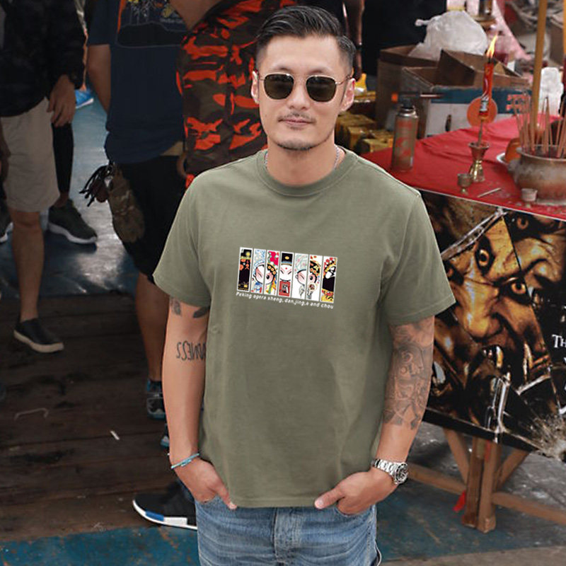 National tide short-sleeved T-shirt boys summer round neck pure cotton loose half-sleeved personality original Chinese style Beijing opera printing tee