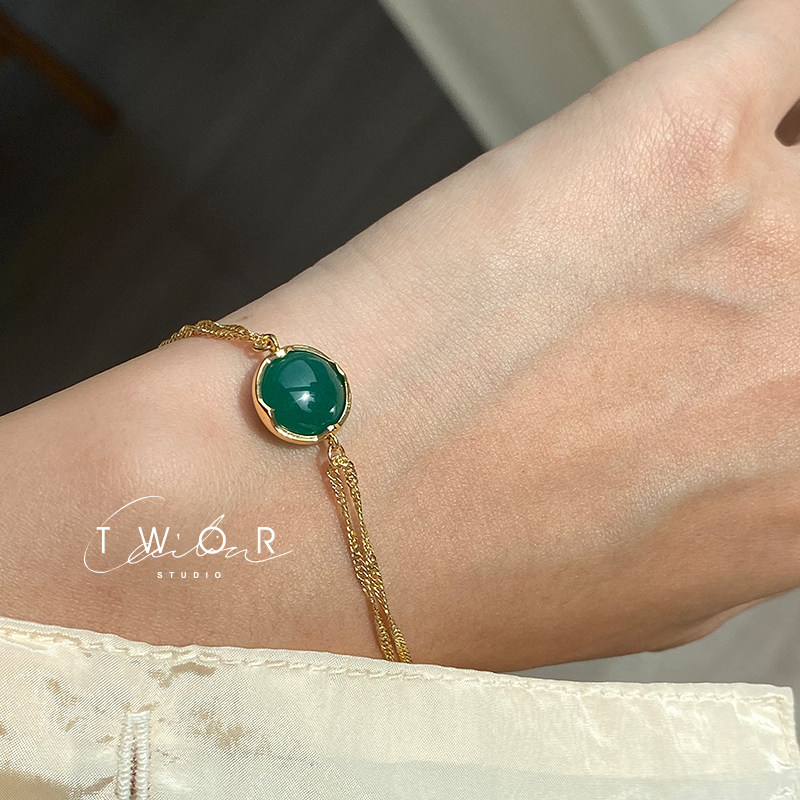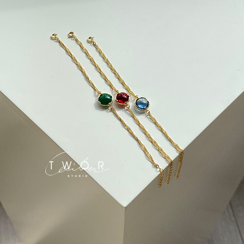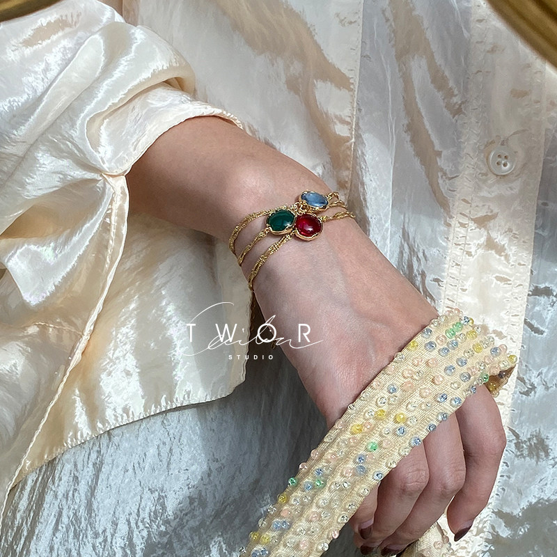 TWOR original design double chain ins retro red blue emerald bracelet simple and versatile