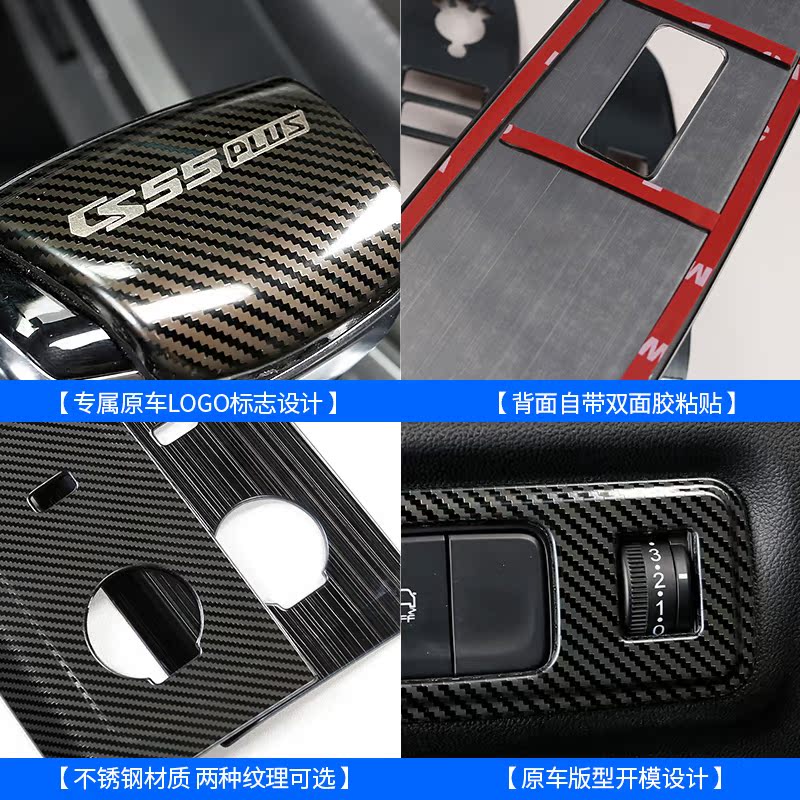 Suitable for Changan CS55plus stainless steel interior patch gear head carbon fiber glass switch sequin gear frame
