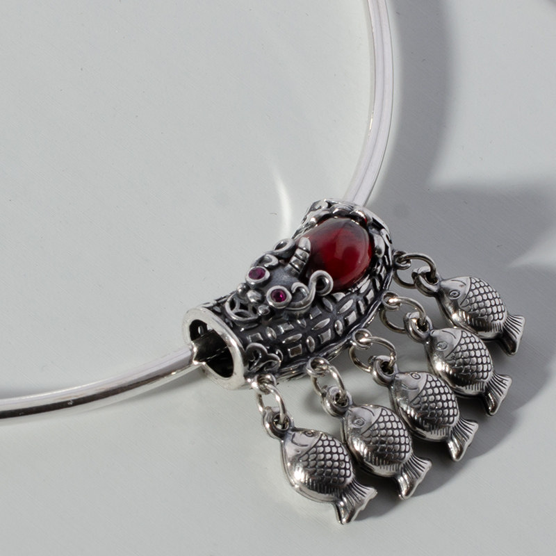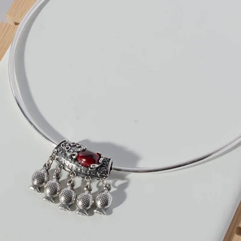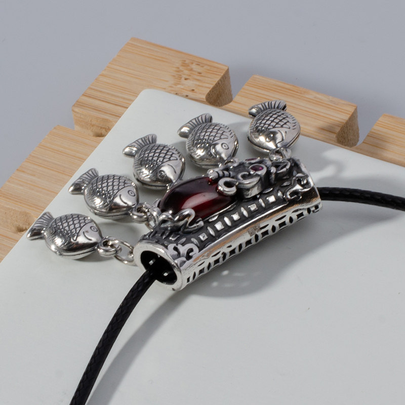 999 Sterling Silver Collar Women's Adult Solid Small Fish Silver Pendant Pixiu Retro Tassel