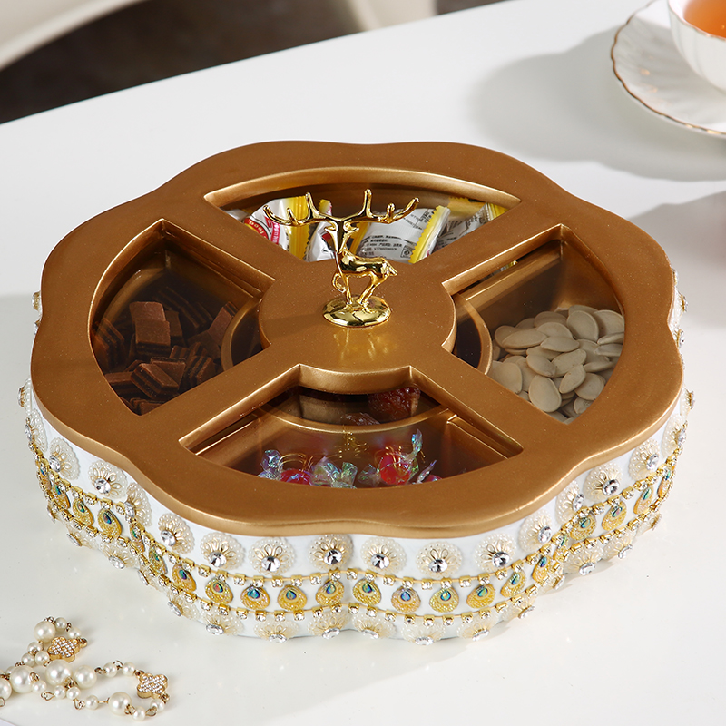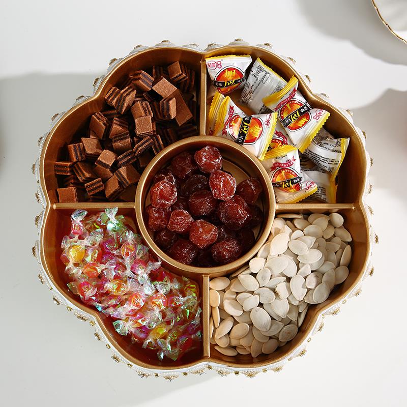 European style dried fruit bowl family creative luxury New Year melon seed snacks fruit bowl divided cubicle living room end table stick drill candy box