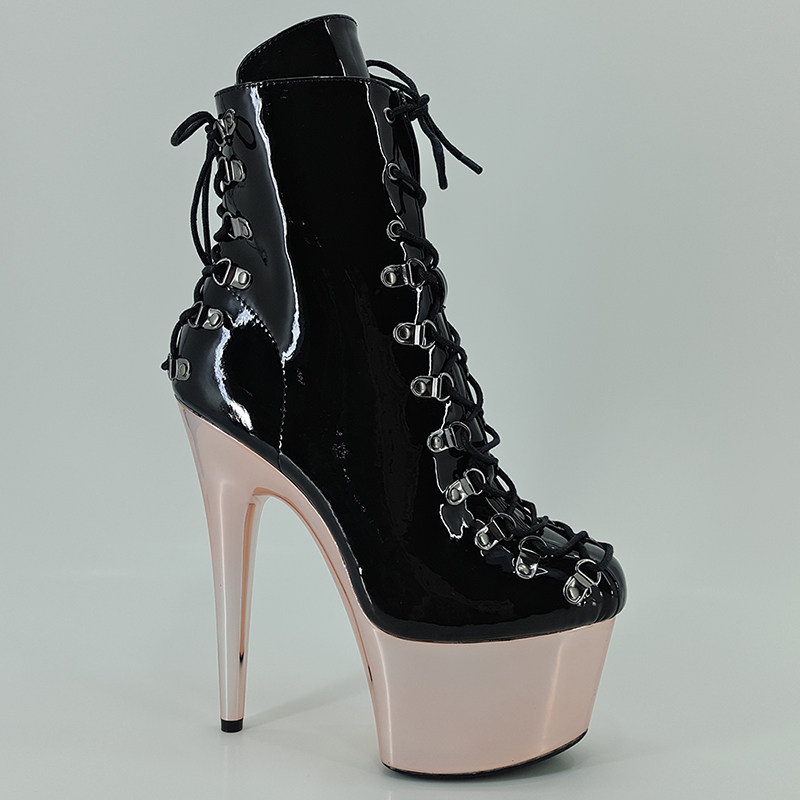 Leecabe New Hate Sky High Short Boots Steel Tube Dance Waterproof Bench Paint Leather Ultra High Heels Nightclub Walk Show 20CM2D
